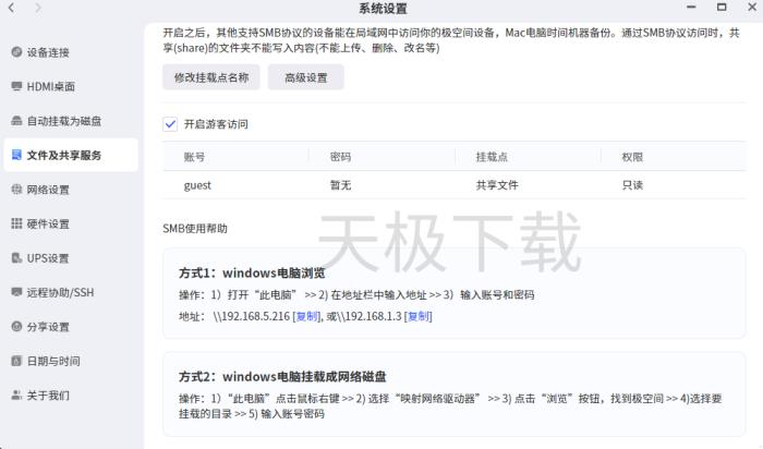 极空间的SMB文件共享服务,是基于SMB局域网协议推出的重要功能。开启后,同一局域网内的Windows、Mac、手机、智能电视等设备,不用额外装客户端,就能直接访问、读写和管理存储的文件。它支持细致的权限设置,不仅兼容多种系统和老旧设备,还优化了传输效率,轻松实现设备间的文件共享和协作。