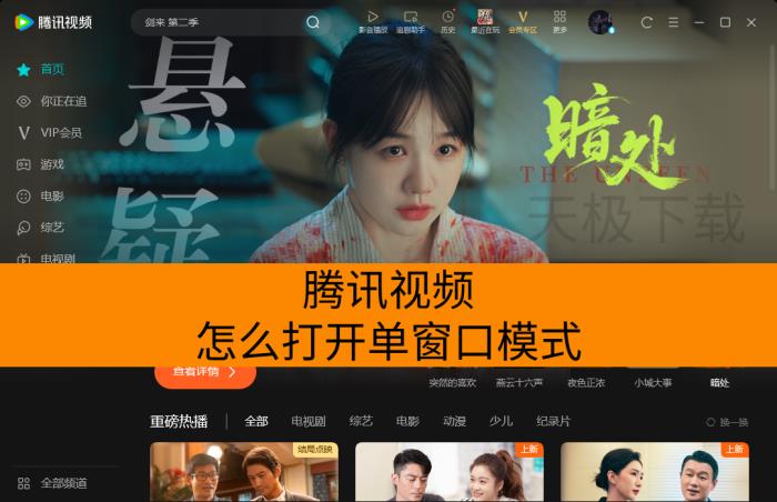 腾讯视频的单窗口模式是PC端的一项播放设置,它能把主界面和播放器合并成一个窗口,用起来更省空间,也更方便。开启后,播放视频时只会出现一个整合窗口,包含播放控制和内容浏览,不会再有主界面和播放器分开的情况。