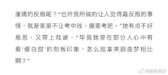 她有点不好意思、戏谑地:“毕竟我曾在部分人心中有着‘傻白甜’的刻板印象。”她还谈到日常生活除了应尽事务,最多的时间会拿来看剧本,去旅行也会带着剧本。