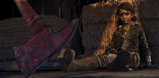 在故事尾声,两人在逃离尸群时,克莱曼婷的腿被丧尸咬伤。二人躲进一座谷仓,但很快被丧尸包围。虚弱的克莱曼婷将丧尸内脏涂满自己身上,恳求AJ独自逃生,并请求他要么杀了自己,要么让她变成丧尸。然而,AJ并没有按照她的请求行动,而是挥起斧头砍向她的腿。