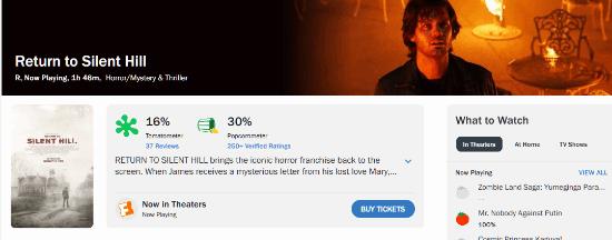 外媒Playground报道《重返寂静岭》在俄罗斯上映不到两周,票房已经超过3亿卢布,令人吃惊的是,虽然豆瓣评分只有4.5分,烂番茄指数也仅16%。