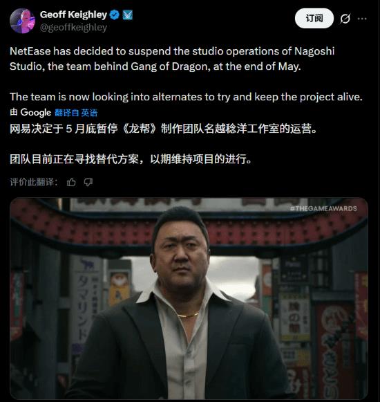 网易撤资如龙之父新作,资助5年追加3亿引热议