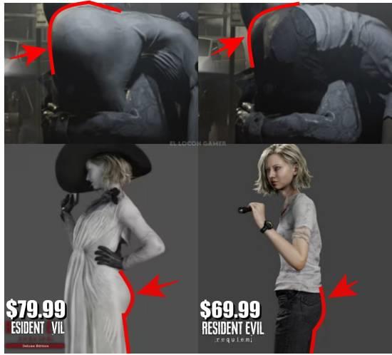 帖子中还配上了多张对比图片,展示了格蕾丝的蒂米特雷斯库外观和格蕾丝原版外观的身材差距。发帖玩家称,一些玩家平时会批评游戏MOD,但当类似内容以官方付费形式推出“官方版收费MOD”时却没有什么反应。