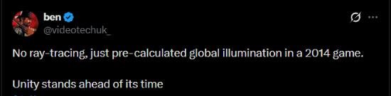 更新推出后,有玩家分享了新的实机演示视频,并感叹这款游戏即便没有光线追踪,仅依靠预先计算的全局光照,画面表现依然十分惊艳。许多人认为,这款2014年的作品即使放在今天来看依旧相当出色,堪称“超越时代”的画面表现。