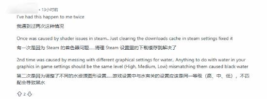 不少网友纷纷玩梗调侃,有人将“黑色的水”与游戏中的黑水镇联动,戏称这里才是名副其实的“黑水”;也有网友讨论该bug的出现原因与解决方法;还有人把黑色液体调侃成石油,笑称 “这下终于有钱了”。