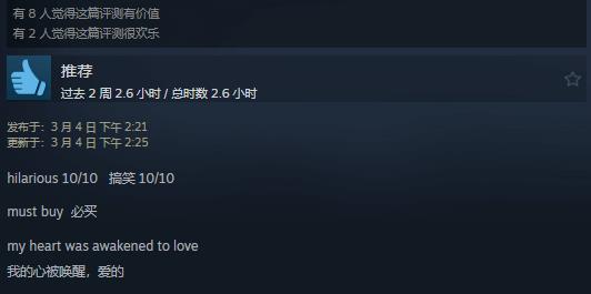 不少玩家认为游戏质量不错,唯一一条英语评测(截至发稿前),更是给出了极高的评价。