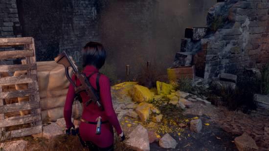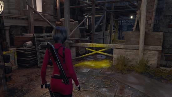 网友@s1nick分享了《生化4重制版》中被涂满黄漆的游戏截图,并调侃道:“很高兴他们终于不再用这种离谱的黄漆了。”