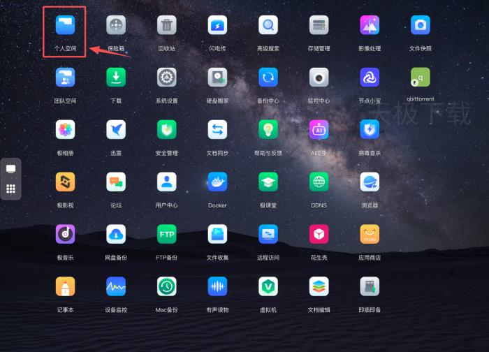 1.打开极空间,点击【个人空间】。