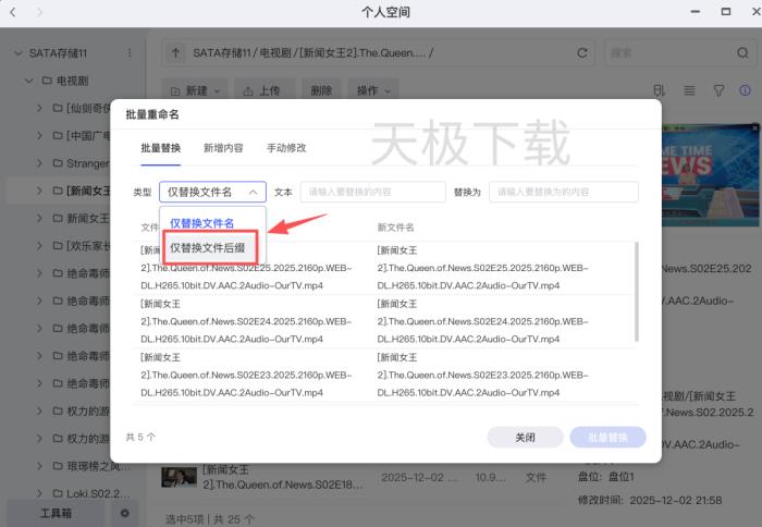 极空间可以批量替换文件后缀吗