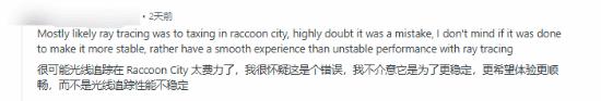 玩家群体对此也呈现出两极分化的态度。不少玩家与数毛社观点一致,对画质降级表示不满,有Reddit用户直言,浣熊市场景画质与游戏中格蕾丝相关场景相比“大幅缩水”。但也有部分玩家表示理解,认为禁用光追后画面更干净,反而提升了实际游玩体验。