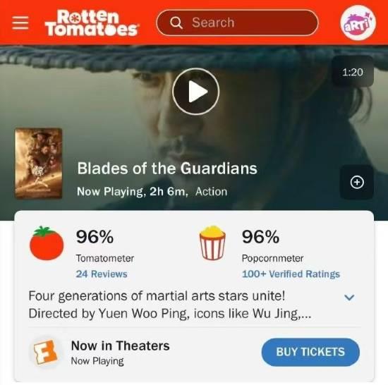 今天,《流浪地球》系列导演郭帆分享了吴京主演的《镖人》的喜讯,影片在烂番茄上的新鲜度提升到96%,票房也跃升至全球武侠片的第二位。