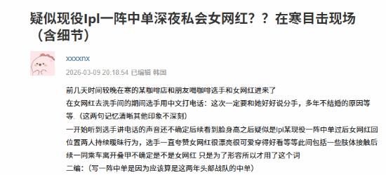 最近,豆瓣“再竟一次”小组上有人爆料,说LPL赛区的一位知名韩国中单选手疑似在恋爱时劈腿一位女网红,帖子内容指向性很强,直指这位在国内有女友但多年未结婚的韩国中单。