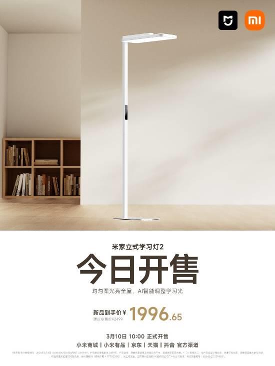 小米米家立式学习灯 2(大路灯)今日正式开售,产品原价 2499 元,享受国家补贴后到手价仅 1996.65 元。