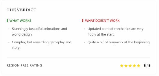 Regionfree 指出,《物语3》将该系列推向了一个全新的高度。在 PS5 Pro 的强力加持下,游戏的帧率极其稳定,画面表现力如同一部宏大的交互式动画电影。相较于前作,本作在地图垂直空间和探索自由度上有了质的飞跃。