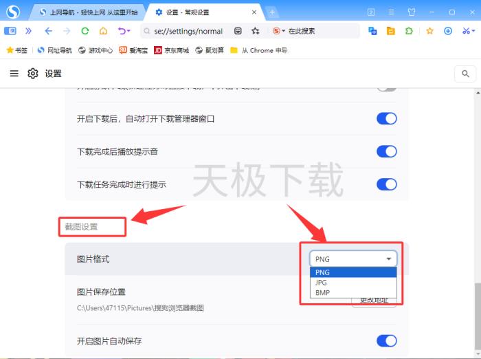 搜狗浏览器如何修改截图保存格式