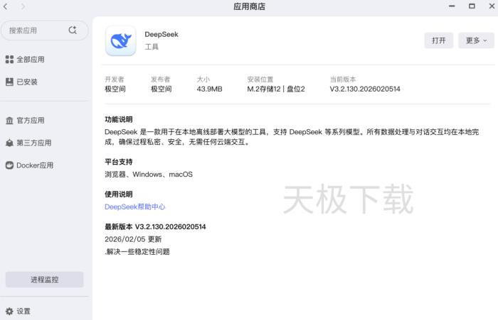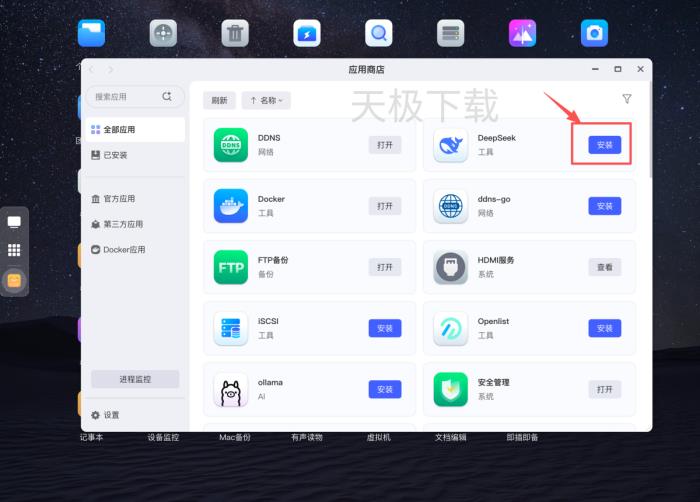 2.在应用商店中找到DeepSeek,点击【安装】。