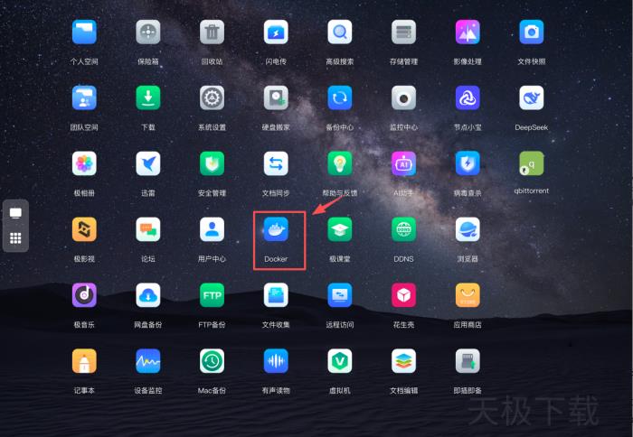 1.打开极空间,点击【Docker】。