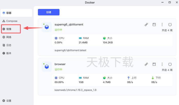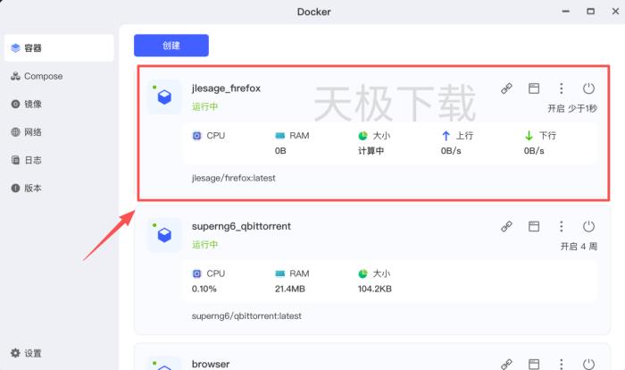 4.下载完成后回到【容器】,点击【创建】。