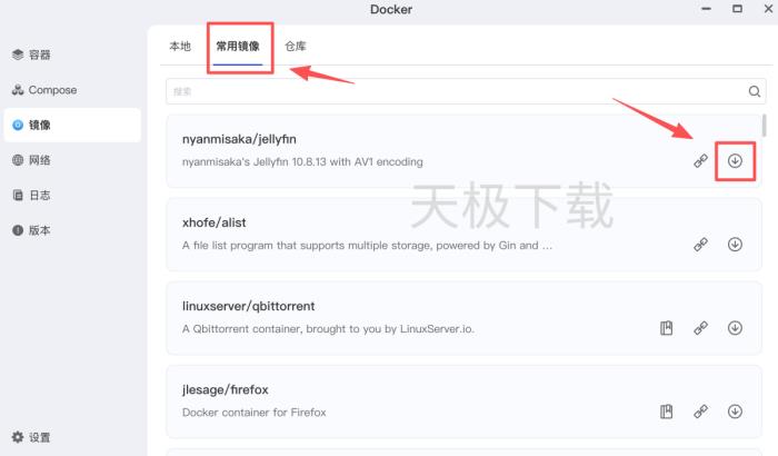 3.选择【常用镜像】,在需要安装的镜像后点击【下载】。