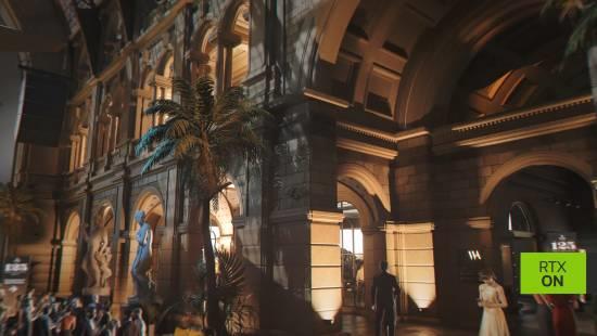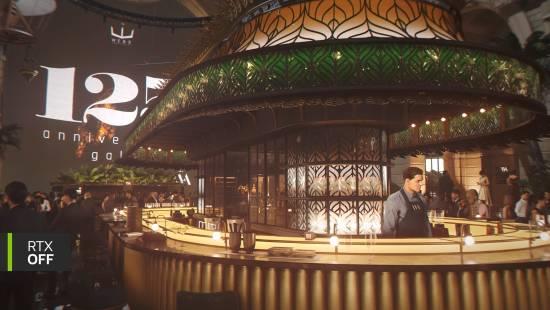 不同于传统的光线追踪,路径光追能够模拟光线在复杂环境中的真实反射与散射。从奢华赌场中流光溢彩的大理石地面,到雨夜伦敦街头霓虹灯的倒影,甚至是邦德定制西装上的微弱反光,都在视频中展现出了令人屏息的真实感。