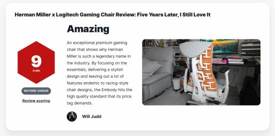 这款电竞椅IGN打出9分,坐五年还和新的一样