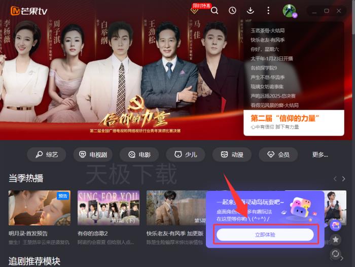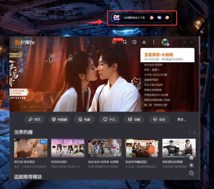 芒果TV电脑版的桌面灵动岛是个新推出的功能,是从苹果iOS的灵动岛设计中获得的灵感,在电脑屏幕上创建了一个可以随意拖动的悬浮区域,这样一来,用户能更方便地直接进入芒果TV的丰富内容和新玩法,观看体验更顺畅了。