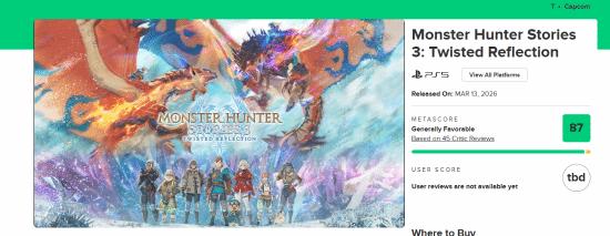 在媒体评价方面,本作的表现同样不俗。此前IGN为《怪物猎人物语3》打出了9分的高分评价,而在Metacritic平台上,游戏目前的综合评分也达到了87分,整体口碑相当稳健。