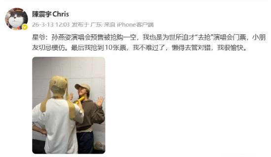 除了搞怪合照,周星驰还通过社交平台发文,幽默讲述“打劫”始末,称自己是“为世所迫才出此下策”,还特意温馨提示“小朋友切忌模仿”,最后得意地宣布“战果”:“最后我抢到10张票,我不难过了,懒得去管对错,我很愉快。”细心的网友发现,这句配文巧妙串联了孙燕姿《我不难过》《懒得去管》《我很愉快》三首经典歌名,堪称“铁粉级”玩梗,尽显星爷的幽默本色。