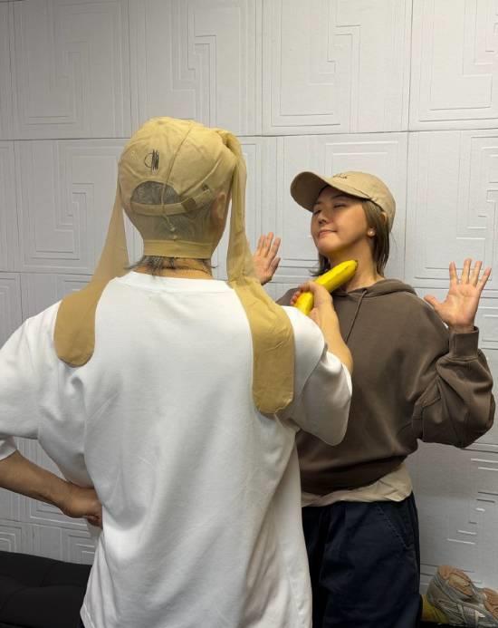 3月13日,周星驰的经纪人@陳震宇Chris在社交平台晒出一张趣味合影。照片里,周星驰头戴肉色丝袜,造型搞怪得像扎了两个小辫子,手里拿着一根香蕉,装作“凶狠”地抵在孙燕姿的脖子上。孙燕姿也玩得尽兴,举起双手摆出投降的姿势,表情俏皮又轻松,画面反差感十足,逗趣又可爱。