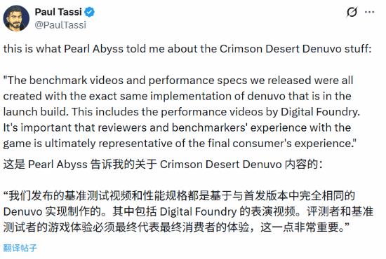 “我们发布的所有基准测试视频和性能规格要求,都是在与正式版完全相同的Denuvo环境下制作的。这包括Digital Foundry录制的性能视频。对我们来说,确保评测者和基准测试者的体验与最终消费者的体验完全一致至关重要。”