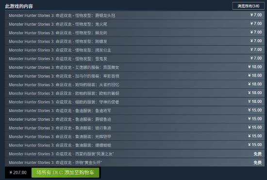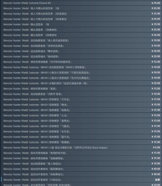 《怪物猎人:世界》的部分DLC一览,全DLC总价2807人民币(贰仟捌佰零柒圆)