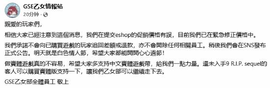 对此,GSE官方回应称,他们已经注意到这一问题,并且正在紧急修正价格当中。不过,他们不会因此要求已购买的玩家退还游戏,也不会向这些玩家要求追缴差价,更不会开除涉事员工。