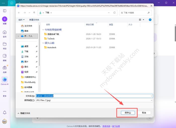 2、随即弹出窗口,选择好下载位置之后点击右下角【保存】即可成功下载到本地。