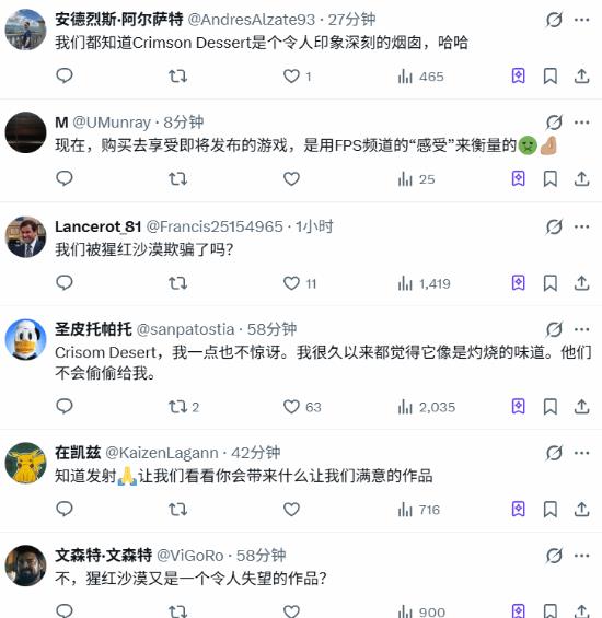 部分玩家担心游戏的最终成品无法达到预告片那种“美得不真实”的效果:“难道我们被《红色沙漠》骗了吗?我一直觉得这游戏好得有点假。”