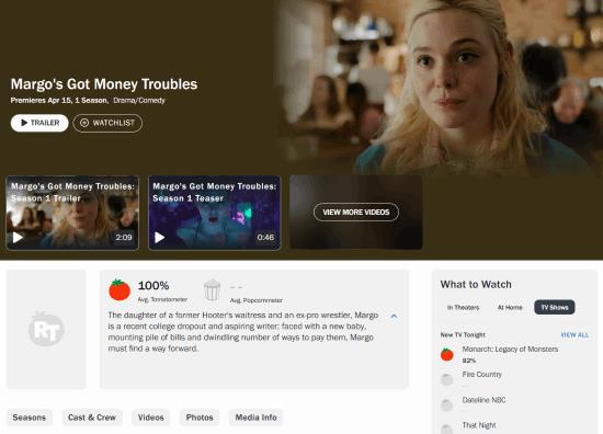 《玛戈没钱了》改编自Rufi Thorpe 2024年的同名小说,探讨了当代年轻女性面临的生存困境。该剧开分时在知名影评网站烂番茄上的新鲜度达到了100%,口碑呈现出一边倒的赞誉。