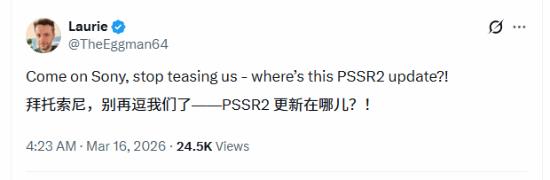然而,这场备受瞩目的更新却陷入了“推送缓慢、信息模糊”的困境。早有博主宣称PSSR的更新已经推出。但截至3月16日,不仅国内大量玩家反馈未收到更新提示,即便身处核心市场的美国,不少用户也仍未解锁该功能。