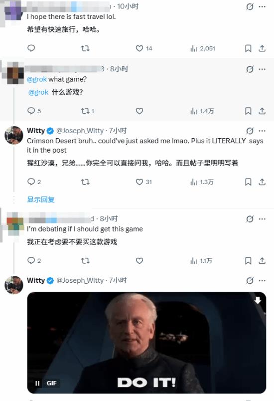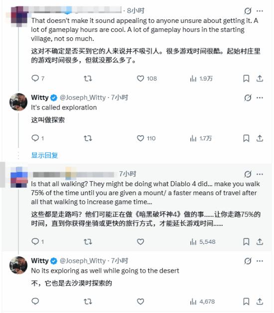 知名游戏主播Witty最近试玩了《红色沙漠》,他说从新手村走到沙漠中心地带,光靠两条腿得走上四个钟头,这话一出,玩家们立马就讨论开了。