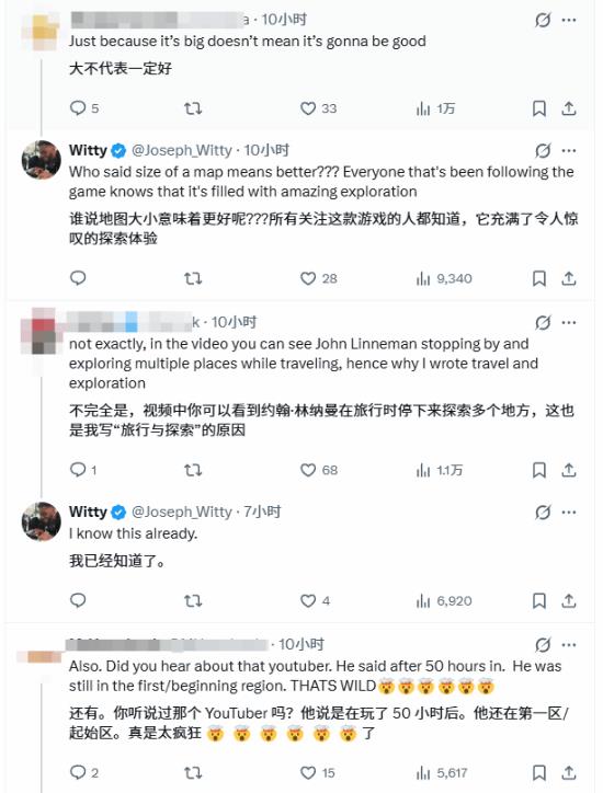 Witty 发布的 46 秒实机视频显示,角色全程徒步穿越荒漠、峡谷与遗迹地带,沿途呈现丰富的地形与场景细节。他将这段路程定义为 “探索”,但该说法并未获得玩家普遍认同。评论区出现明显立场分化:大量玩家直言 “希望有快速旅行”,认为 4 小时步行会劝退非核心玩家;还有玩家爆料有主播游玩 50 小时仍未离开初始区域,质疑开发商刻意拉长流程,将 “探索” 包装为无意义的时间消耗。