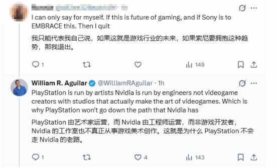 面对这样的看法,WilliamR.Aguilar再次做出回应。他觉得PlayStation的决策更多站在美术创作的角度,而英伟达的团队以工程师为主,很少有一线游戏开发者和美术创作者参与,这也是两家厂商技术路线差异巨大的关键原因。他也因此判断,索尼不会照搬英伟达的技术思路。