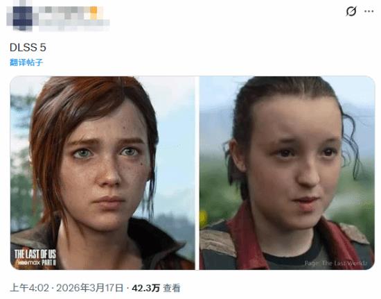 有网友制作了梗图:假如《最后生还者》艾莉使用了DLSS 5技术——摇身一变成了真人剧集的“小熊女”贝拉·拉姆齐。