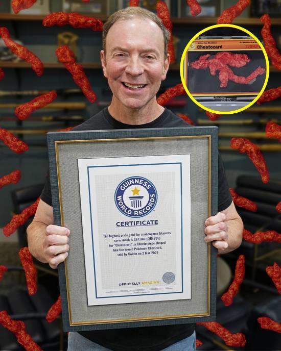 在2025年2月时,“喷火龙奇多”登上了拍卖行Goldin的拍卖平台,吸引了众多粉丝竞价,最终演变成一场相当激烈的竞拍。最终成交价(包含22%手续费)达到了87840美元。而在2026年3月16日,吉尼斯官方终于宣布,“喷火龙奇多”创下了“外形类似电子游戏角色的玉米零食成交最高价格”这一纪录。