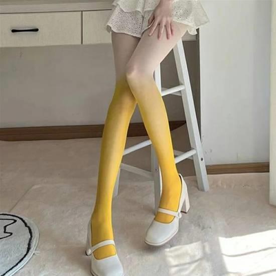 最近,有款渐变色丝袜在国外非常受欢迎,颜色有蓝、黑、粉、黄、绿几种,从脚到大腿呈现深浅渐变效果,单条售价1688日元,折合人民币73元。