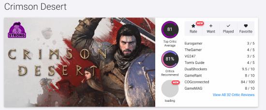 《红色沙漠》的媒体评价公开了,OC站给了81分,推荐率也有81%,拿到了“Strong”的评级。这游戏玩起来感觉挺有野心,但缺点也挺明显的。