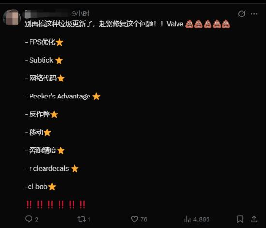 大批玩家吐槽V社总在发布“意义不明”的更新,却长期忽视真正亟待解决的问题——包括优化反作弊、提升性能与手感、恢复CSGO时期备受好评的实用功能(如cl_bob减少手臂晃动等)。当然,也有玩家对此次更新表示支持,认为它增加了游戏中的策略博弈与资源管理深度。