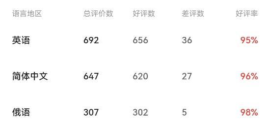 而随着游戏正式在Steam平台解锁,首批评价也已正式出炉。截至发稿,根据星空数据,游戏已在Steam收获1991份评价,其中96%为好评,评价等级为“好评如潮”。简中好评率同样也是96%,评价等级“好评如潮”。