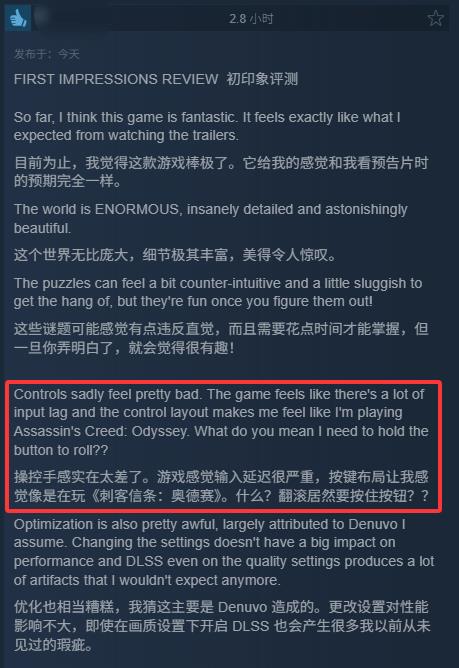 根据Steam评测区的玩家评测反馈,本作无论是手柄操作还是键鼠操作都存在较为严重的适配性问题: