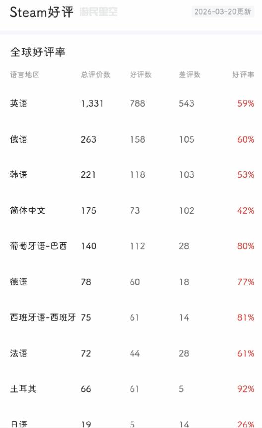 国区评价目前好评率为38%多半差评,目前仍在不断波动中: