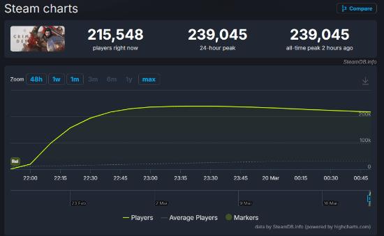 目前数据来看Steam在线人数为21.5万,峰值在线23.9万,并且在发售的一小时内全球在线人数就迅速打破20万。