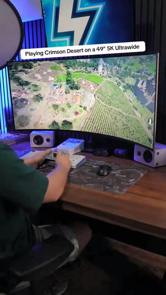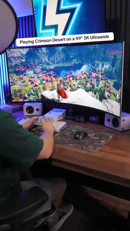 此外,博主还晒出了在5K超宽屏上实时运行《红色沙漠》的画面,画面效果令人惊艳。
