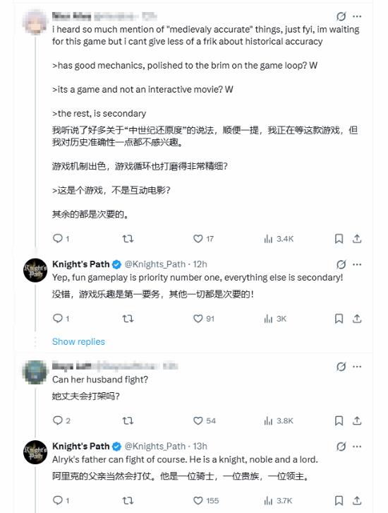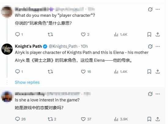 官方在回复中明确角色设定。玩家操控的主角是Alryk,本次公开的新角色Elena是主角的母亲,并非可恋爱角色。官方还补充,主角的父亲是骑士、贵族与领主,具备战斗能力。